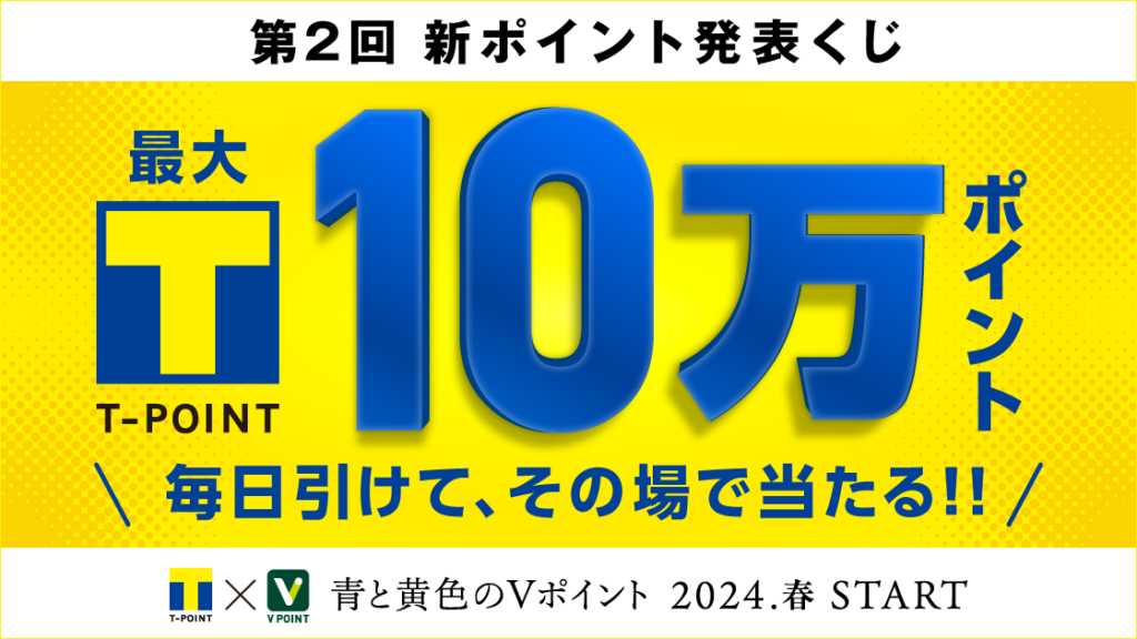 Vポイント貯まるくじの紹介。Vポイント10万ptが当たる!