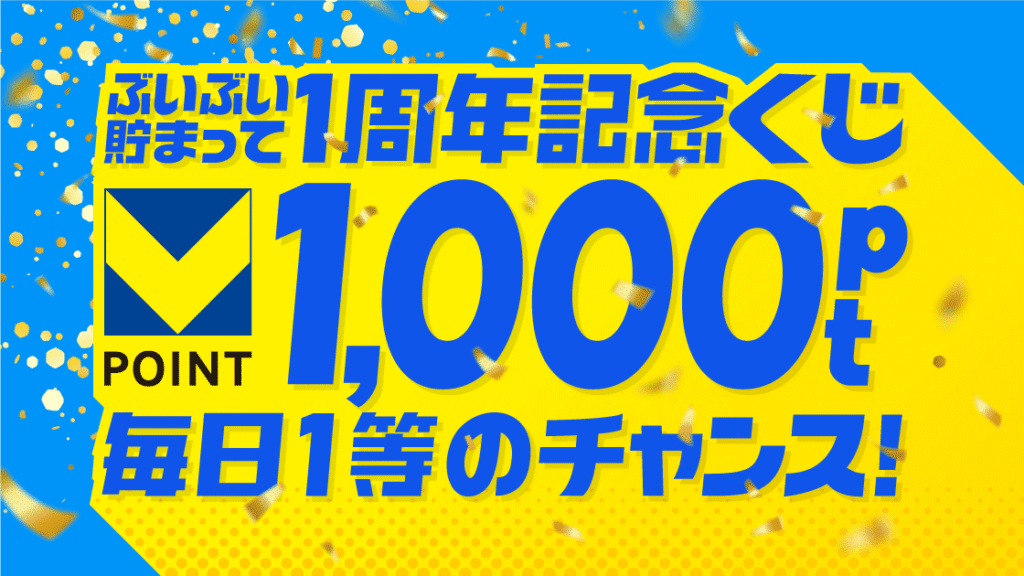 Vポイント ぶいぶい貯まって1周年記念くじの紹介。Vポイント1000ptが当たる!