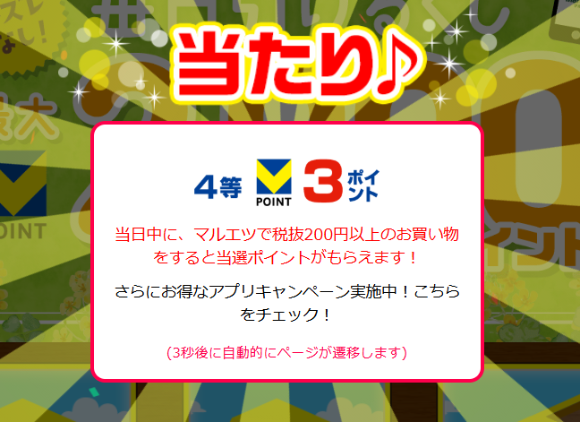 ※ マルエツチラシアプリ毎日引けるくじ のリンクは、本ページの下部にあります。