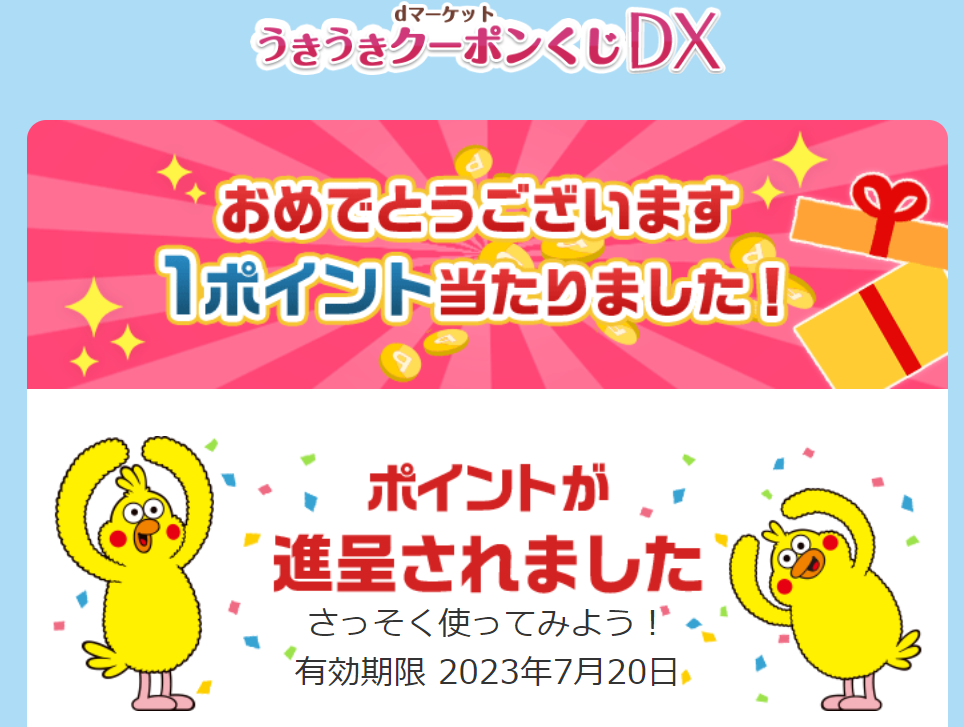 ※dマーケットうきうきクーポンくじのリンクは、本ページの下部にあります。