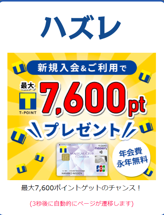今回のポイ活くじは、毎日引けてTポイントがもらえる「マジカルクラブTカードJCBくじ 」です。