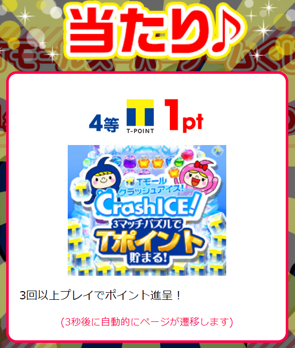 - 3等:Tポイント100pt