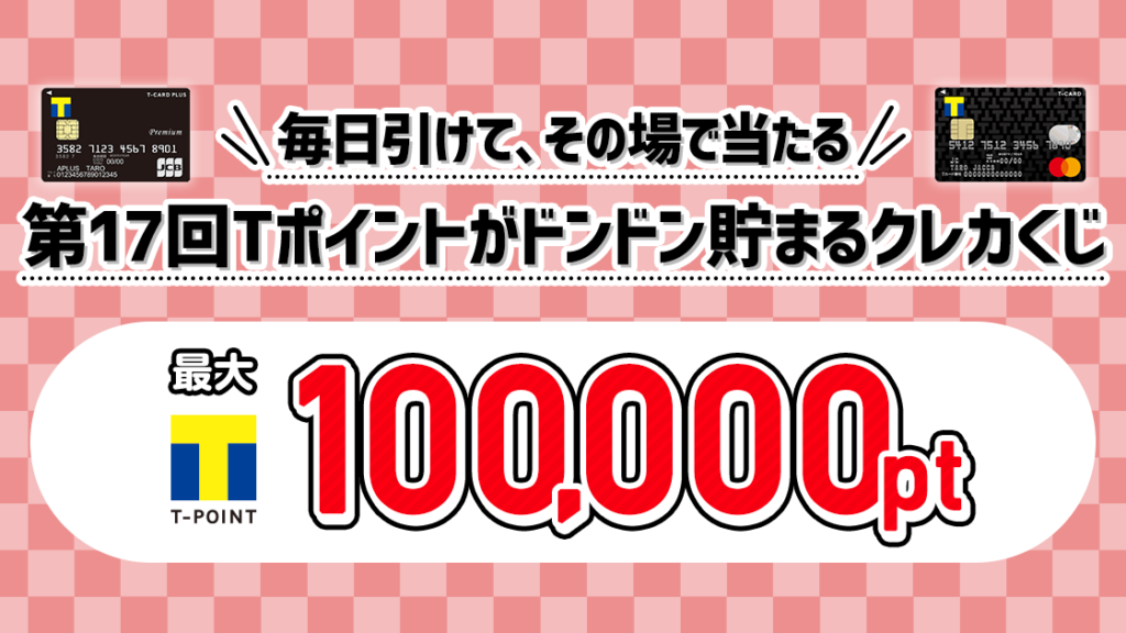 TカードPrimeくじの紹介。Tポイントが10万ポイントが当たる!