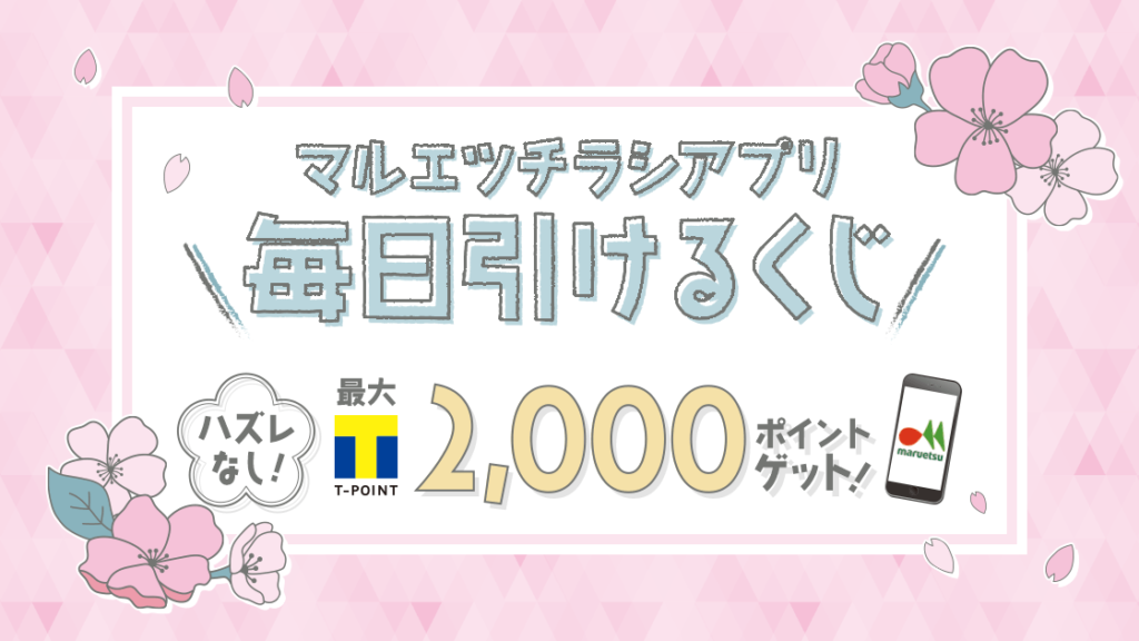 Tポイントアプリ限定 マンスリーくじ(3月)の紹介。Tポイント2,024pt当たる